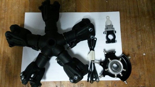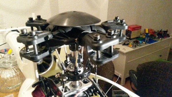 Ich habe wie in meiner alten EC 135 auch direkt auf 120 Grad Taumelscheibenanlenkung umgebaut. Original sind 90 Grad mit 4 Servos. So spare ich mir einen Servo