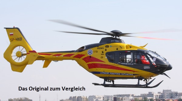 EC 135 Kennung SP-HXB Fuselage Vario, Rotordurchmesser 168 cm, Abfluggewicht 12,5 Kg, Wert: 9999.- € Video hier