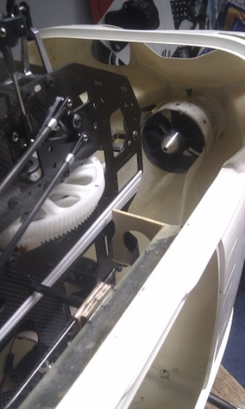 Habe ich auch direkt eingebaut. Die Seitlichen Kunstoffverkleidungen der Mechanik habe ich vorne im Motorbereich gekürzt und wieder angebaut.